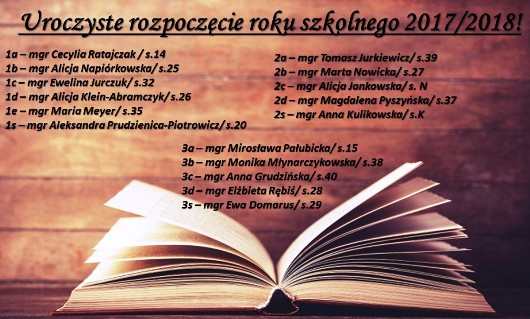 Plan lekcji obowiązujący od 04.09.2017r. Plan 04.09.2017 [link] Kiermasz podręczników używanych 5 września 2017 mała sala - długa przerwa |