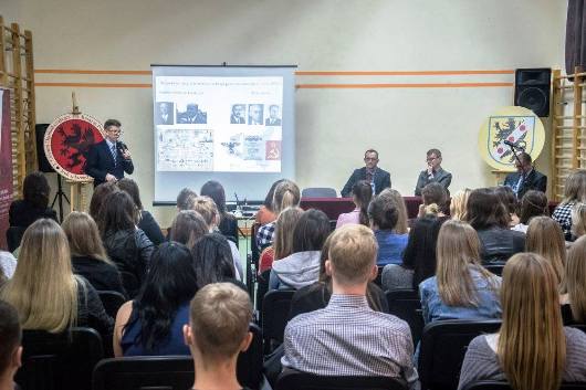 W czwartek 28 września w naszej szkole odbyła się konferencja popularnonaukowa w ramach projektu "Bliskie spotkania z historią najnowszą Kaszub". Młodzież klas humanistycznych wzięła udział w pierwszej lekcji tego projektu pod tytułem " Sfałszowane zwycięstwo. Referendum (1946) i wybory parlamentarne ( 1947 ) na Kaszubach." Organizatorami tego przedsięwzięcia było Muzeum Piśmiennictwa i Muzyki Kaszubsko- Pomorskiej w Wejherowie oraz nasza szkoła. Słowo wstępne i wykład pod tytułem " Referendum (1946) i wybory sejmowe (1947) w powiecie morskim " wygłosił Michał Hinc z wejherowskiego muzeum. Krzysztof Drażba z gdańskiego Instytutu Pamięci Narodowej przedstawił wykład pod tytułem " Kaszuby znak-3 razy tak. Referendum z 30 czerwca 1946 roku w Polsce na przykładzie woj. gdańskiego". Marcin Kłodziński z Uniwersytetu Gdańskiego zaprezentował młodzieży wykład pod tytułem "Zwycięstwo? Wybory do Sejmu Ustawodawczego 1947 r. w powiecie tczewskim". Ostatnim prelegentem był Daniel Czerwiński z gdańskiego IPN, który przybliżył temat " Aparat bezpieczeństwa w województwie gdańskim wobec referendum i wyborów ". Wszystkie wykłady wzbogacone o prezentacje multimedialne w ciekawy sposób przybliżyły uczniom tematykę utrwalania władzy ludowej po II wojnie światowej. Kolejne spotkanie z historią najnowszą Kaszub odbędzie się na wiosnę. |