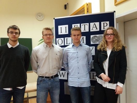 28 października uczniowie naszego liceum wraz z nauczycielem historii Moniką Młynarczykowską udali się do Czerska na II etap Olimpiady Wiedzy o Laureatach Pokojowej Nagrody Nobla. Eliminacje II stopnia obejmowały część pisemną i ustną. Test składał się ze zróżnicowanych pytań zamkniętych i otwartych, wzbogaconych o teksty źródłowe, dane statystyczne i mapy. Część pisemna obejmowała treści nauczania z historii, wiedzy o społeczeństwie, rozszerzoną o materiały dotyczące wiedzy o laureatach Pokojowej Nagrody Nobla. Część ustna polegała na przygotowaniu prezentacji multimedialnej na temat wybranego Noblisty i odpowiedzi na pytania ekspertów. Nasza szkoła była dumnie reprezentowana przez młodzież klas drugich i trzecich: Klaudię Sałek z IId, Krzysztofa Waltera z IIIb oraz Macieja Krużę i Antoniego Rożka z IIIs. Miło nam poinformować, iż Krzysztof Walter wygrał eliminacje okręgowe w Czersku, zaś Klaudia zajęła zaszczytne II miejsce. Nasza młodzież awansowała do III etapu - eliminacji centralnych, które odbędą się w Gdańsku 28 listopada. Serdecznie dziękujemy uczniom za ogrom pracy włożony w przygotowanie do konkursu i gratulujemy sukcesu!!! Trzymamy kciuki za powodzenie w ostatnim etapie Olimpiady!!! |