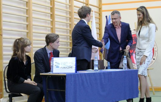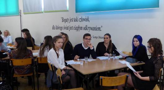 W czwartek, 7 czerwca w naszej szkole odbyła się debata oksfordzka. Była ona ukoronowaniem wcześniej przeprowadzonych warsztatów na temat debat. Organizatorem przedsięwzięcia był Instytut Debaty Publicznej i nasza szkoła. Przy tej okazji gościliśmy przedstawicieli władz powiatowych: p.Anna Jamróz-Szedaj, p.Jacek Thiel. Teza debaty brzmiała "W szkole powinien zostać wprowadzony zakaz używania smartfonów". Drużyna "PROPOZYCJI" w składzie: Ilona Dargacz, Emil Reszczyński, Michał Skowroński i Maja Nowak mieli przekonać publiczność do wprowadzenia zakazu używania smartfonów w szkole. Drużyna "OPOZYCJI " w składzie: Weronika Szulc, Marek Gross, Julia Musiałkowska, Katarzyna Westa miała natomiast przekonać, aby nie wprowadzano tego zakazu. Każdy z czterech mówców miał 4 minuty na swoją wypowiedź, mógł również zadawać pytania przeciwnikom. Osobą prowadzącą debatę- Marszałkiem był p. Andrzej Skiba z IDP. Po skończonej debacie publiczność złożona z naszych uczniów i uczniów Powiatowego Zespołu Szkół nr 2 w Rumi jako zwycięzców wskazała drużynę PROPOZYCJI. Gratulujemy uczestnikom debaty wiedzy, odwagi i elokwencji. Inicjatywa ta pokazała jak wielką sztuką jest dowodzenie swoich racji, umiejętność kulturalnej dyskusji i publicznego wystąpienia. Opiekunami projektu były: p.Cecylia Ratajczak i p. Mirosława Pałubicka. |
