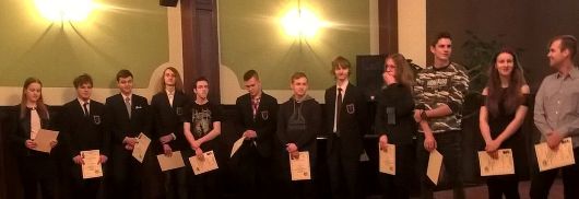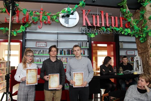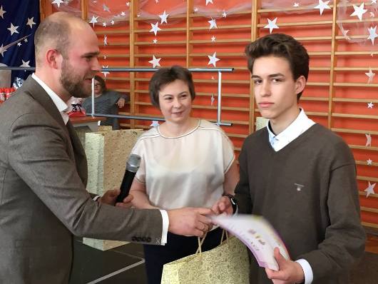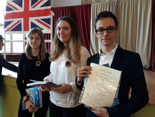Dnia 13 kwietnia 2018 r. w I LO w Wejherowie odbył się finał XX edycji Powiatowego Festiwalu Poezji w Języku Angielskim. Uczniowie naszej szkoły wzięli udział we wszystkich trzech kategoriach występów. W piosence: Adriana Czuryńska z zespołem kl. IIIc Klaudia Jaś kl. IIc w scence: Oliwia Janica kl. Id Magdalena Szwarc kl. Id Agata Jażdżewska kl. Id Dariusz Brzeski kl. Id Dawid Jabłoński kl. Id Marek Gross kl.Ie w wierszu: Artur Tkacz kl. Ib Kamila Tymrakiewicz kl. IIc Gratulacje dla Adriany oraz dla zespołu aktorskiego The Dream Team za zdobycie pierwszych miejsc w swoich kategoriach. |