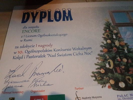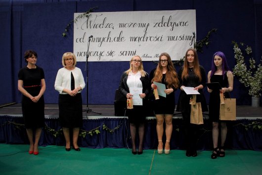 II miejsce w kategorii juweniliów poetyckich za wiersz "Aniele stróżu mój" zajęła Aleksandra Freyer z kl. 1a oraz III miejsce w kategorii szkół ponadgimnazjalnych w Pomorskim Konkursie Poetyckim Piórnik dla dzieci i młodzieży Uroczyste wręczenie nagród odbyło się 6 czerwca w Centrum Kultury w Gdyni. |