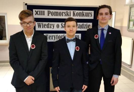 W dniu 8 listopada w ZSP nr 2 w Wejherowie odbył się z okazji Święta Niepodległości - X Powiatowy Konkurs "Polska i Polacy w latach 1914-1939". Składał się on z części testowej i drużynowej obejmujących politykę zagraniczną i wewnętrzną II RP oraz kulturę i gospodarkę II RP, kampanię wrześniową i historię ORP ''Orzeł". Naszą szkołę reprezentowali uczniowie klasy IIIa, - Weronika Holka, Sandra Prena i Bartłomiej Szott. Najlepszy wynik w teście (I m. indywidualnie) zajęła Weronika Holka. Na siedem drużyn ze szkół powiatu nasi uczniowie nie mieli konkurencji i zajęli I miejsce. Uczniów przygotowała p. Mirosława Pałubicka. |