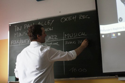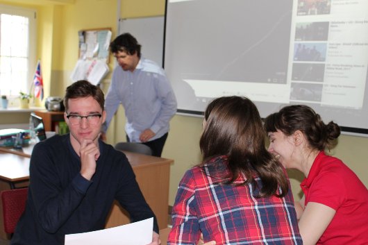 18 kwietnia 2018 roku mieliśmy zaszczyt gościć w naszym liceum dr Tomasza Wiśniewskiego z Instytutu Anglistyki i Amerykanistyki Uniwersytetu Gdańskiego, który przyjechał do uczniów klas lingwistycznych i dwujęzycznych na warsztaty w języku angielskim zatytułowane Narrating the World. Podczas dwugodzinnego spotkania wykładowca przybliżył młodzieży m.in. postać Samuela Becketta, zapoznał z ideą teatru absurdu oraz Théâtre de Complicite. Uczniowie mieli możliwość spróbować swoich sił w analizowaniu przedstawianych im obrazów i interpretowaniu ukrytych w nich znaczeń. Było to kolejne cenne doświadczenie, w którym język angielskim okazał się kluczem do zrozumienia kultury i sztuki. |