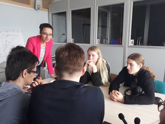 10 kwietnia 2018 r. grupa 13 uczniów z klas lingwistycznych i dwujęzycznych pojechała na Uniwersytet Gdański na Wydział Filologiczny po kolejną dawkę akademickich wrażeń. Tym razem uczniowie uczestniczyli w dwugodzinnych warsztatach na temat tłumaczeń ustnych, przeprowadzonych przez dr Paulę Gorszczyńską. Licealiści zgromadzeni w prawdziwym laboratorium językowym, najpierw wysłuchali krótkiego wykładu na temat charakterystyki zawodu tłumacza, rodzajów tłumaczeń ustnych oraz predyspozycji i cech niezbędnych do wykonywania tego zawodu. Następnie po kilku ćwiczeniach językowych na rozgrzewkę, skorzystali z kabin do tłumaczeń symultanicznych i spróbowali swoich sił tłumacząc z języka polskiego na język angielski improwizowaną wypowiedź swojej opiekunki p. Agnieszki Jankowskiej. Uczniowie opuścili zajęcia bogatsi o wiedzę na temat różnych technik zapamiętywania wiadomości oraz praktyczne informacje dotyczące wykonywania zawodu tłumacza. Takie spotkanie to doradztwo zawodowe w najdoskonalszej postaci! |