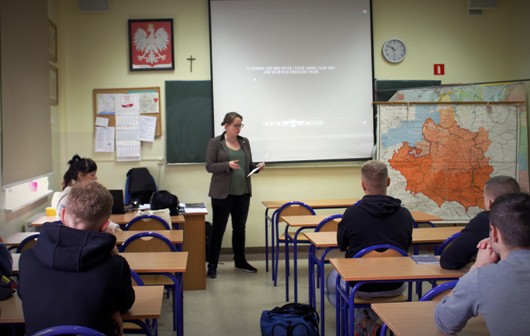 Dnia 11 kwietnia na lekcji historii i społeczeństwa w klasie II s gościliśmy Panią Barbarę Męczykowską - doktora historii nauk humanistycznych, a zarazem pracownika Oddziałowego Biura Edukacji Narodowej IPN w Gdańsku. Zajęcia były poświęcone zgłębianiu tematyki filmu "Niezwyciężeni", który został przygotowany przez Instytut Pamięci Narodowej. Animacja ukazuje walkę Polaków o wolność od pierwszego dnia II wojny światowej aż do upadku komunizmu w Europie w 1989 roku. Młodzież z wielkim entuzjazmem wysłuchała refleksji naszego gościa na temat filmu, po czym bardzo aktywnie indywidualnie i grupowo uczestniczyła w pracy z materiałami, dotyczącymi "Niezwyciężonych". Koordynatorem tej niezwykłej lekcji był nauczyciel historii Monika Młynarczykowska |
