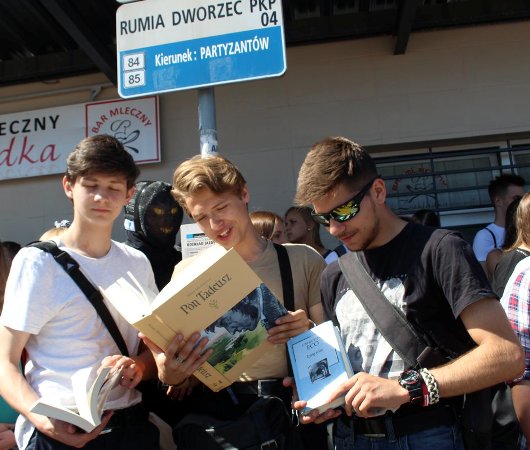 ![]() 8 czerwca cała społeczność I Liceum Ogólnokształcącego w Rumi zorganizowała przemarsz "na wesoło" do Stacji Kultura. Uczniowie przygotowali transparenty z hasłami propagującymi czytelnictwo oraz wcielili się w różne postacie literackie. W ten sposób zwrócili uwagę na to jak ważnym elementem jest czytelnictwo w edukacji młodego pokolenia. Do marszu przyłączyła się także grupa uczniów ze Szkoły Podstawowej nr 10 w Rumi. |