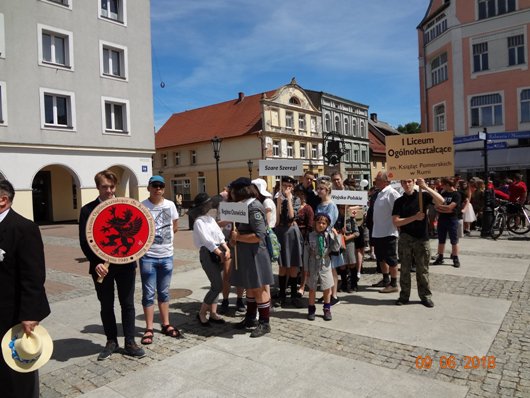 W dniu 9 czerwca 2018 roku, młodzież naszej szkoły, z opiekunem panią Grażyną Górak, brali udział w „Marszu Pokoleń”. Wielki Przemarsz Pokoleń pod Znakiem Orła przeszedł, w samo południe, ulicami Wejherowa na Plac Jakuba Wejhera. Inicjatywa wydarzenia związana była ze 100-leciem odzyskania przez Polskę niepodległości. Na Rynku miało miejsce radosne śpiewanie pieśni patriotycznych, wraz z zespołem Fucus. Inicjatorem akcji był Członek Zarządu Powiatu Wejherowskiego a jednocześnie prezes Stowarzyszenia Misternicy Kaszubscy - Wojciech Rybakowski |