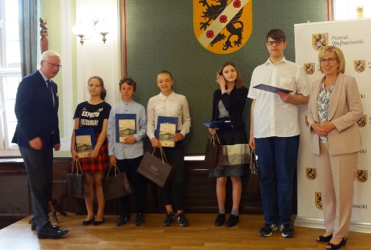 W dniu 13 czerwca 2018 roku w budynku Starostwa Powiatowego w Wejherowie odbyła się gala finałowa konkursów organizowanych w 100-lecie odzyskania przez Polskę niepodległości. Na galę zostali zaproszeni wyróżnieni uczniowie z opiekunami merytorycznymi. Prace konkursowe oceniało niezależne jury z Gdyńskiej Szkoły Filmowej. W konkursie plastycznym na projekt murala przyznano tylko jedną nagrodę, którą otrzymał Jakub Dawidowski z klasy I e, opiekunem ucznia była pani Grażyna Górak W konkursie fotograficznym „Śladem starej pocztówki” III miejsce uzyskał Rafał Zamojski z klasy II d, którego opiekunem była pani Barbara Niewiedziała. |