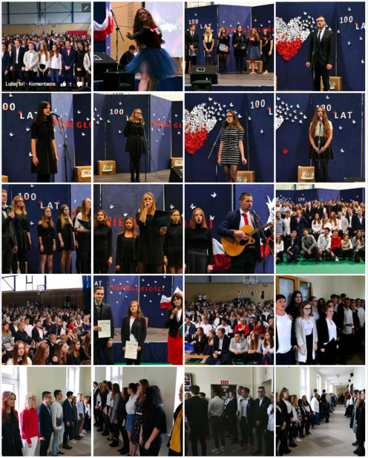Dnia 9 listopada uroczyście obchodziliśmy w naszej szkole 100. Rocznicę Odzyskania przez Polskę Niepodległości, na którą składał się program artystyczny, Dzień Wąsa oraz świętowanie "Dnia dla Niepodległej". Montaż poetycko-muzyczny zawierał wypowiedzi Jana Pawła II oraz wiersze Kazimierza Wierzyńskiego i Romana Brandsteattera. Wykorzystano również piosenki poetyckie Anny German i Marka Grechuty. W programie artystycznym wystąpili także laureaci szkolnego konkursu recytatorskiego poezji patriotycznej oraz pieśni patriotycznej. Za przygotowanie oprawy poetyckiej odpowiadały Panie Cecylia Ratajczak i Monika Młynarczykowska. Program artystyczny wzbogacony był występem chóru szkolnego pod kierunkiem Pani Joanny Klein-Szalkowskiej. Kolejnym elementem obchodów Święta Niepodległości był Dzień Wąsa, który ma na celu uczczenie pamięci Józefa Piłsudskiego. |