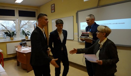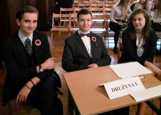 W czwartek,8 listopada 2018 r. odbył się w Wejherowie XI Powiatowy Konkurs Historyczny "Polska i Polacy w latach 1914-1939". Naszą szkołę reprezentowali: KATARZYNA WESTA z kl.III a oraz MICHAŁ PIŁAT i EMlL RESZCZYŃSKI z kl.IIa. Kasia Westa zajęła I miejsce indywidualnie, a cała drużyna również zajęła I miejsce. Opiekunem drużyny była Mirosława Pałubicka. Pytania konkursowe dotyczyły polityki wewnętrznej i zagranicznej, gospodarki i kultury II RP, kampanii wrześniowej i losów "ORP'Orzeł". |