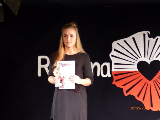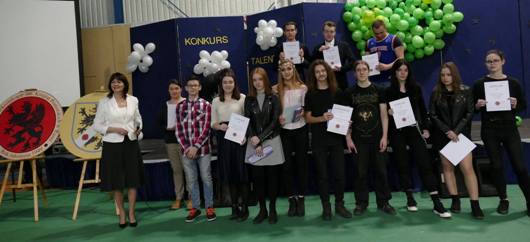 „Każdy ma talent, tylko nie każdy o tym wie”…. Tymi słowami Eryk Szefer i Igor Białek, debiutanci w roli konferansjerów, udowodnili, że go mają, prowadząc Dzień Talentów w I LO w Rumi. W muzyczny nastrój wprowadził nas Janek Dias, chłopak z gitarą, wyśpiewując sobie miejsce na podium. Darek Kaźmierczak, lokalny beat boxer, udzielił nam cennej lekcji rytmu, a Sandra Mazurek pokazała niezwykłą wrażliwość w poetyckim wykonaniu swojego utworu. Kaja Dryl i Marta Kuczuro okazały się być bardzo utalentowanymi wizażystkami, mamy nadzieję, że potencjalne klientki nie zabiorą całego ich wolnego czasu. Zdumiewający talent artystyczny Mikity Meininsha sprawił, że spojrzeliśmy na niego z zupełnie innej perspektywy. Czujemy się zaszczyceni, że jest uczniem naszej szkoły. Pięknie współbrzmiące ze sobą głosy Wiktorii Nastały i Klaudii Jaś spowodowały, że to właśnie one zwyciężyły w konkursie. Emilian Turek przeniósł nas w spokojny świat muzyki instrumentalnej, a tym samym wyciszył nas przed ostrym, zapadającym w pamięć numerem heavymetalowych gitarzystów Marka Grossa i Krzysztofa Milanowskiego, wyróżnionych w konkursie. Julia Pawelec nie musiała nas przekonywać o swoim wybitnym talencie aktorskim, wystarczyła recytacja znanych wierszy. Na koniec mieliśmy przyjemność wysłuchać romantycznego utworu w wykonaniu utalentowanej Weroniki Gmińskiej, a zaraz po niej zaprezentowała swój talent muzyczny Ania Reszke. Szczerze Wam wszystkim gratulujemy i dziękujemy, że postanowiliście podzielić się z nami waszą pasją. Konkurs Talentów stał się też doskonałą okazją do zaprezentowania nowej oferty edukacyjnej na nadchodzący rok szkolny. Ósmoklasiści i gimnazjaliści mogli zapoznać się z profilami poszczególnych klas na stoiskach rekrutacyjnych, które przygotowali uczniowie I LO. W trakcie uroczystości mięliśmy zaszczyt gościć Zarząd Powiatu Wejherowskiego na czele z panią Gabrielą Lisius, Starostą Wejherowskim. Pani Starosta zaprezentowała foldery rekrutacyjne, które zawierają ofertę wszystkich szkól i placówek prowadzonych przez Powiat Wejherowski. |