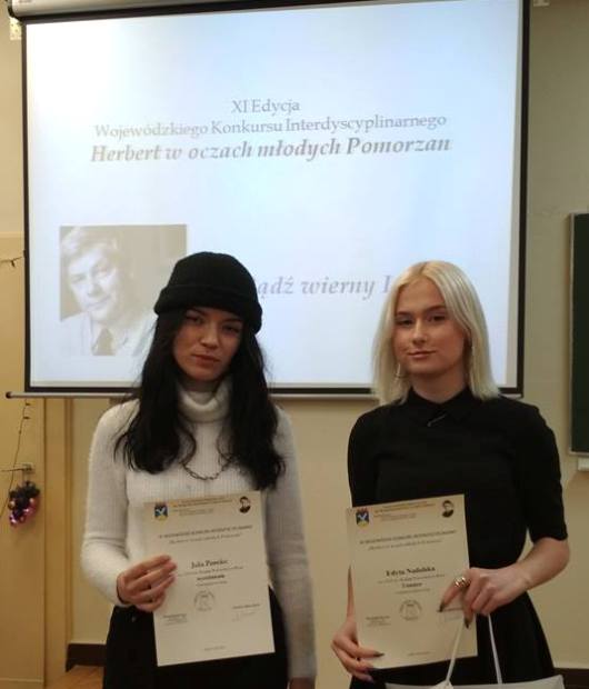 4 kwietnia uczennice naszego Liceum: Aleksandra Szyszkowska z klasy IA, Katarzyna Westa z klasy IIIA i Oliwia Janica z klasy IID rozpoczęły bój w obronie polszczyzny. W XV Konkursie Ortograficzno-Językowym „Posługuję się poprawną polszczyzną” organizowanym przez Powiatowy Zespól Szkół nr 3 w Wejherowie. Dziewczęta stanęły na najwyższym stopniu podium, zdobywając drużynowo I miejsce. Ponadto Aleksandra Szyszkowska zdobyła tytuł Mistrza Ortografii. |