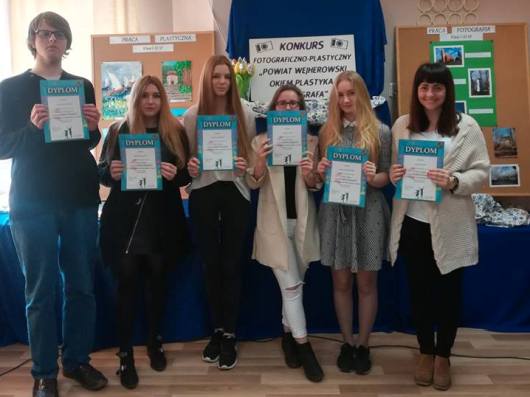 Dnia 4 kwietnia uczniowie naszej szkoły uczestniczyli w gali wręczania nagród w Powiatowym Konkursie Plastyczno-Fotograficznym "Powiat wejherowski okiem plastyka i fotografa". Tematem przewodnim konkursu było ukazanie interesujących obiektów lub miejsc regionu. Prace były oceniane w dwóch kategoriach: plastyczna oraz fotograficzna. W kategorii praca plastyczna zostali nagrodzeni następujący uczniowie: I miejsce: Martyna Meiranke IId II miejsce:Olivia Dużyńska Ib, Lucyna Hinc IIa III miejsce: Oliwia Fierka Is Wyróżnienie: Jakub Dawidowski IIc W kategorii fotografia II miejsce uzyskała Weronika Schulz z klasy IIIa. Opiekunami uczniów były Grażyna Górak, Monika Młynarczykowska i Mirosława Pałubicka. |