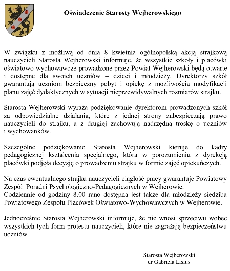 » Oświadczenie Starosty Wejherowskiego |